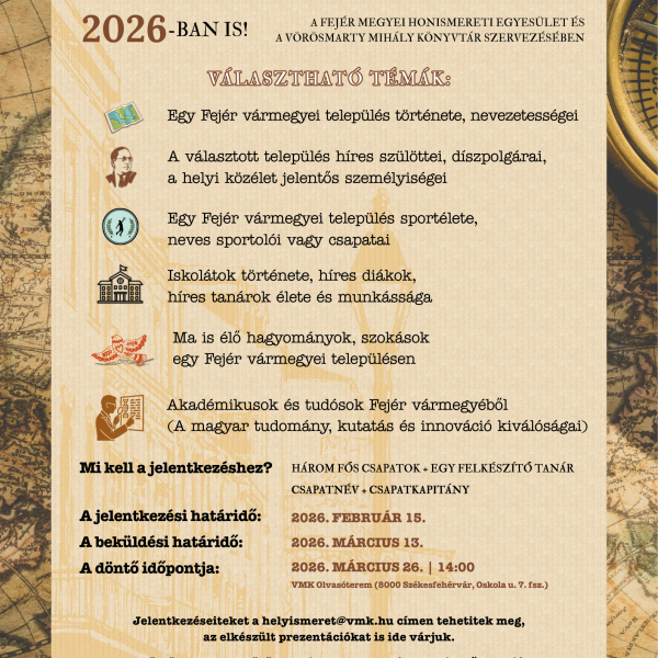2026-ban is meghirdetjük a Fejér Megyei Honismereti Egyesülettel közös szervezésű